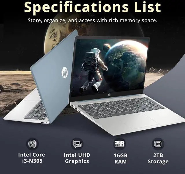 The HP 15.6" FHD Touchscreen Laptop delivers everyday performance with an Intel Core i3-N305 processor, Intel UHD Graphics, a convenient numeric keypad, and a 720p HD camera.