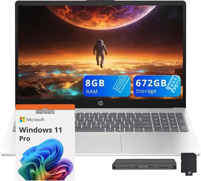 HP 15.6" HD Business Laptop, Intel Core i5-1334U, 8GB DDR4, 672GB Storage (512GB SSD+160GB Docking Station Set), Intel Iris Xe Graphics, Full Size Keyboard, HD Camera, Win 11 Pro, Silver