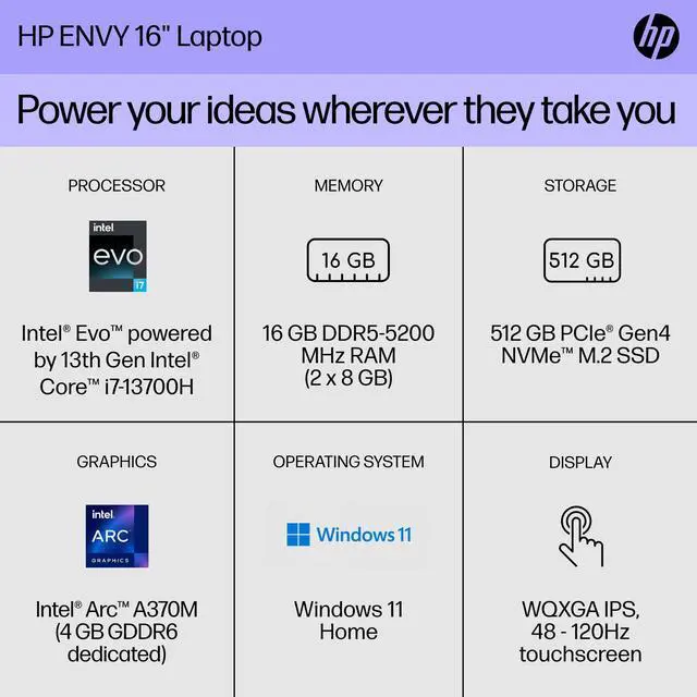 Power, mobility, and seamless creativity anywhereHelp protect our shared futureBecause better feels better, we've included ocean-bound plastics and recycled aluminum in this PC design. Powerful tools for creatingExperience the ultimate color accuracy on a 16" screen and power from the Intel Processor. Look your best on video callsExperience clear video chats with AI Noise Reduction, and a 5MP camera with Auto Frame plus a privacy shutter. Exceptional experience, anywhereThe Intel Evo platform brings together the perfect combination of performance, responsiveness, battery life and stunning visuals in a new class of laptops.