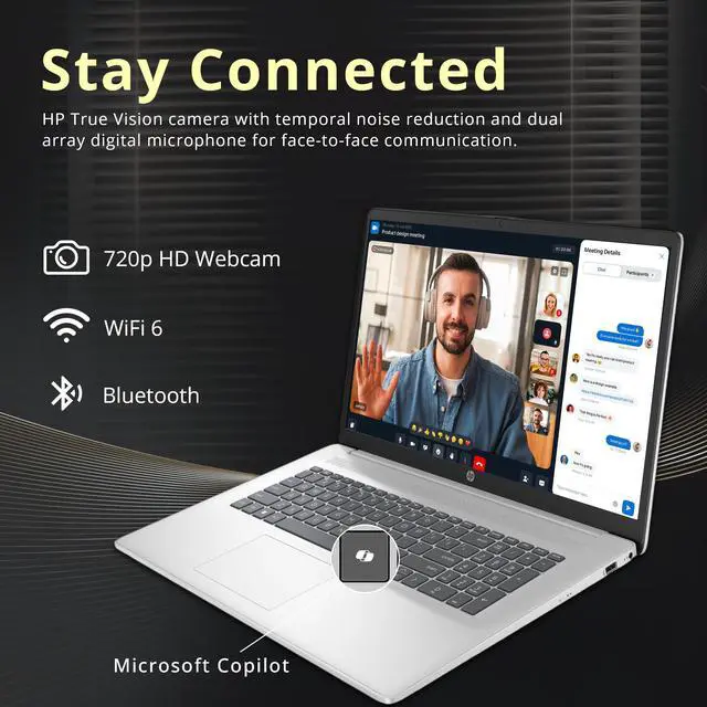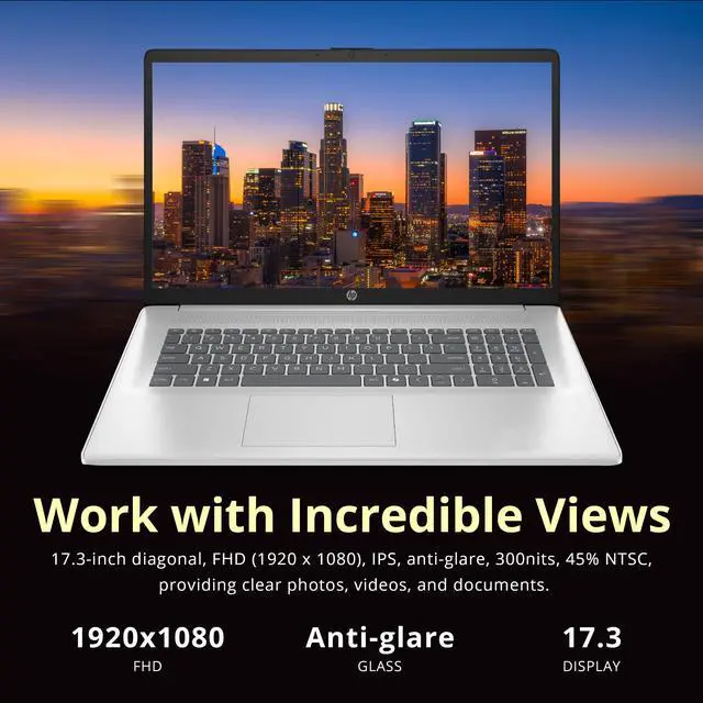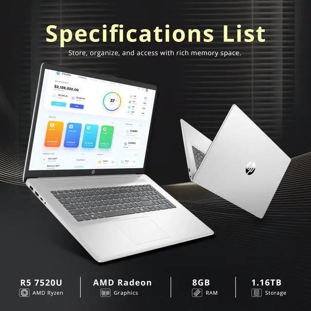 The HP 17.3 '' Full HD Business Laptop delivers smooth and reliable performance powered by the AMD Ryzen 5 7520U Processor, ensuring efficient multitasking for work and daily tasks. With AMD Radeon Graphics, it provides sharp visuals and seamless rendering for presentations, streaming, and light creative work. Its expansive 17.3 '' Full HD display offers vibrant clarity and ample screen space, enhancing productivity and viewing comfort throughout the day.