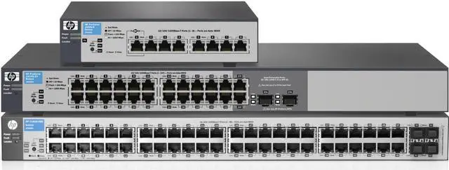 HP 1810 Switch Series devices are smart-managed, fixed-configuration Gigabit and Fast Ethernet Layer 2 switches designed for small businesses looking for key features in an easy-to-administer solution. The series includes 8- and 24-port Gigabit and Fast Ethernet models and a 48-port Gigabit switch. Specific models include SFP ports for fiber connectivity. All support flexible deployment options, including mounting on walls, under tables, or on desktops; some are fanless, ideal for office deployments. The 8-port Gigabit models can optionally be powered by an upstream Power over Ethernet (PoE) switch. Customizable features include VLANs, Spanning Tree, and link aggregation trunking. Newly offered are units designated "Version 2" (v2) with features including the latest energy-saving capabilities - Energy Efficient Ethernet (EEE) and idle-port power down - as well as Rapid Spanning Tree Protocol (RSTP) and DSCP QoS policies. All come with a lifetime warranty.
