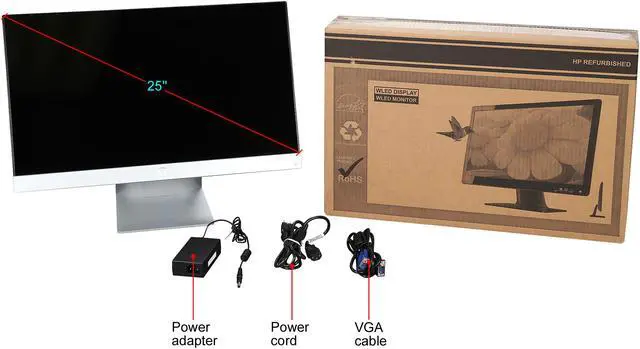 HP Pavilion 25XI Silver / Black 25" HDMI Widescreen LED Backlight LCD Monitor IPS 250 cd/m2 DCR 10,000,000:1 (1,000:1) (Grade B)