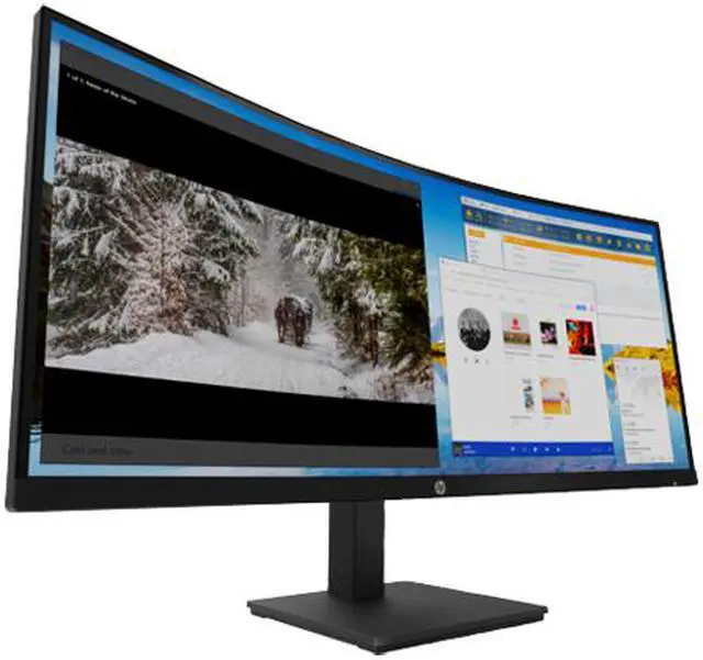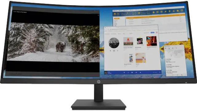 OverviewFind more room to play or work in the M34d WQHD Curved Monitor with built-in audio. Immerse yourself in its ultrawide screen that's proven to keep you up to 33% more focused, compared to a smaller screen. Low haze; On-screen controls; Low blue light mode; Anti-glare; 1500R curvature; Height adjustableWhat's in the box? Monitor; HDMI cable; QSP; 1 USB Type-C® to Type-C cable; AC power cordDisclaimers Based on HP commission ASL Productivity study, October 2019. USB-C® is a registered trademark of USB Implementers Forum.