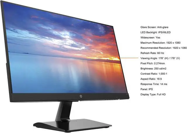 HP 24m 24-inch Class ( 23.8 ) 1920x1080 Full HD IPS Ultra Thin Monitor (HDMI, VGA) Brand HP Screen Size 23.8 in Connector Type 1 x HDMI 1.4 1 x VGA HDCP support (HDMI) Model 24M Resolution 1080p Aspect Ratio 16:9 Response Time 5 ms