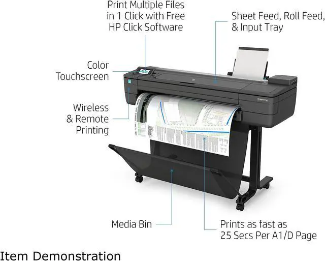 HP Designjet T730 PostScript Inkjet Large Format Printer - 36" Print Width - Color - Printer - 4 Color(s) - 25 Second Color Speed - 2400 x 1200 dpi - 1 GB - USB - Ethernet - Plain Paper, Roll Paper, Bond Paper, Coated Paper, Heavyweight Paper, Recycled Paper, Bright White Inkjet Paper, Technical Paper, Tracing Paper, Vellum, Clear Film, ... - 36" (914.40 mm), 8.27" (210 mm), 12.99" (330 mm), 35.98" (914 mm) x 10.98" (279 mm), 18.98" (482 mm), 74.69" (1897 mm) - Floor Standing Supported