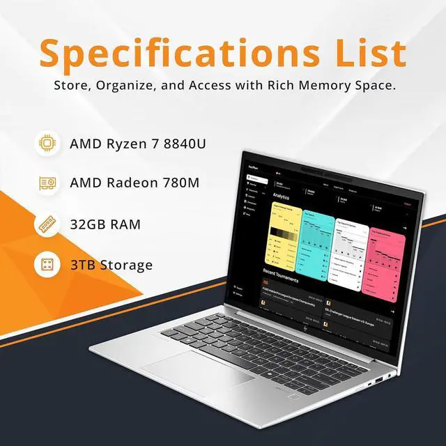 The HP EliteBook 845 G11 14" WUXGA IPS Touchscreen Laptop, powered by the AMD Ryzen 7 PRO 8840U processor and AMD Radeon 780M graphics, delivers exceptional performance for business professionals. It ensures smooth multitasking, responsive computing, and crisp visuals, making it perfect for productivity, collaboration, and everyday office efficiency.