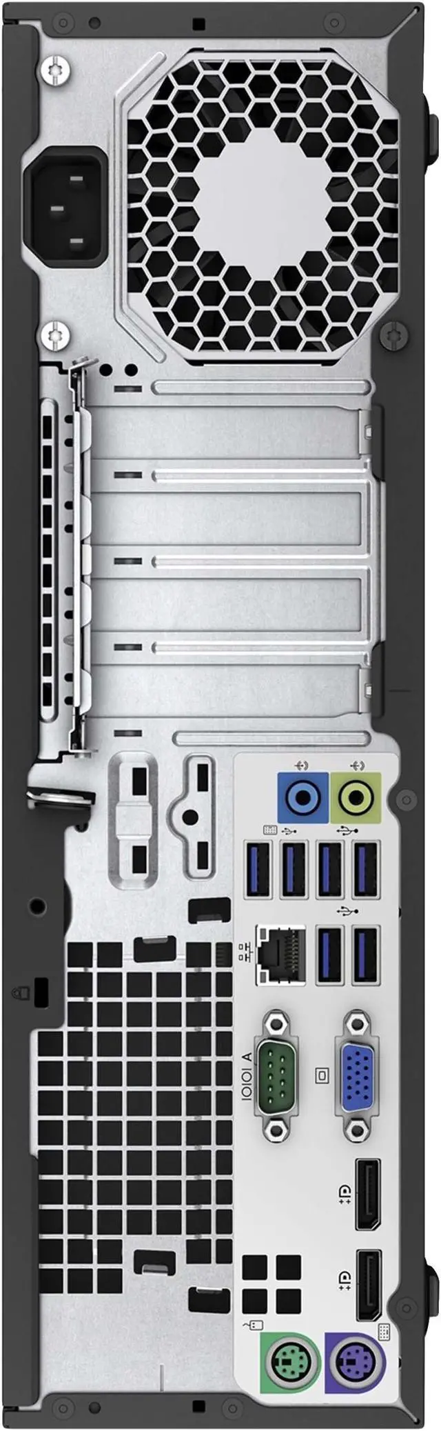 Productivity skyrockets with a multiple-display setup. The desktop comes with one VGA and two DisplayPort ports. It is easy to multiply your screen real estate. No splitter cables or adapters are needed. On the rear panel, up to six USB 3.0 ports are also provided to connect any peripherals, such as external hard drive, mouse, keyboard, and headset.