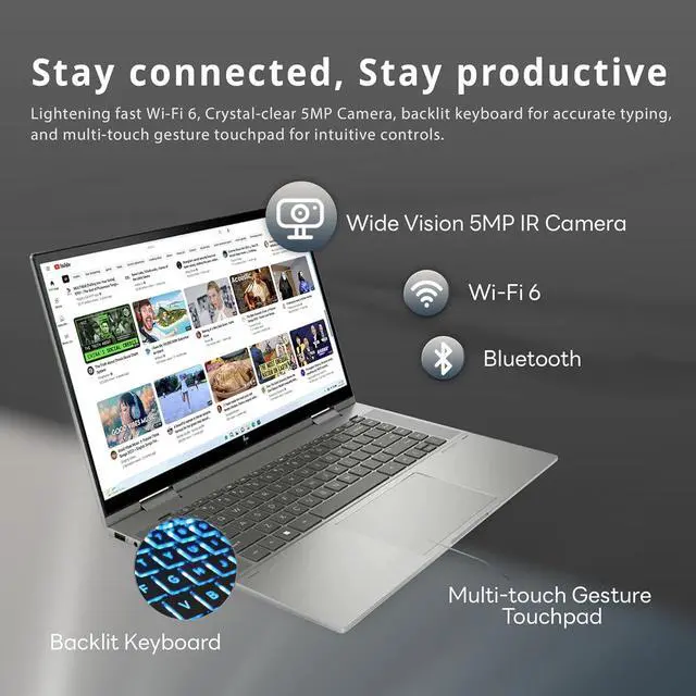 Backlit Keyboard Enjoy comfortable and accurate typing, even in dim light. HP Wide Vision 5MP IR CameraVideo chat with your entire team in stunning details thanks to the 88-degree wide-angle field of view. Infrared sensor assists safe log-in through face recognition. Intel Iris Xe GraphicsEnhance your business capabilities with a graphics solution that delivers vibrant colors, sharp details, and fluid animations to enhance your visual experience.