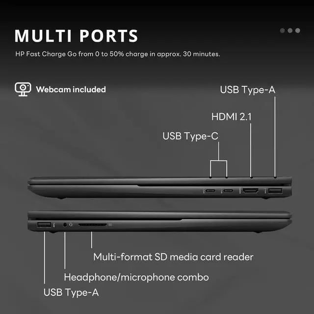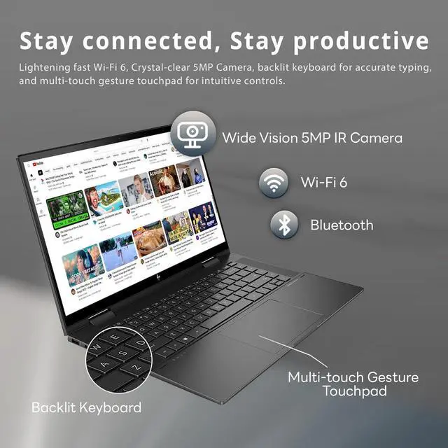 Windows 11 includedEmbrace natural controls that empower you to think, express and create in an efficient way, all within an ultra-secure environment. 14.13''Wx 9.02''Dx 0.73''H, 4.42 lbs. 360° geared hinge, HP True Vision 5MP IR camera with camera shutter, Audio by B&O with dual speakers, Ports: 2x USB SuperSpeed Type A, 2x USB SuperSpeed Type C, 1x HDMI. Wireless-AX + Bluetooth, Black. Bonus 32GB Hotface USB Card.