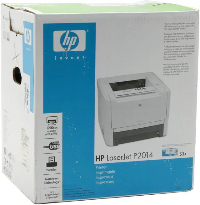 | Package Contents | P2014 printer power cord Support disk toner cartridge, 3K pages |