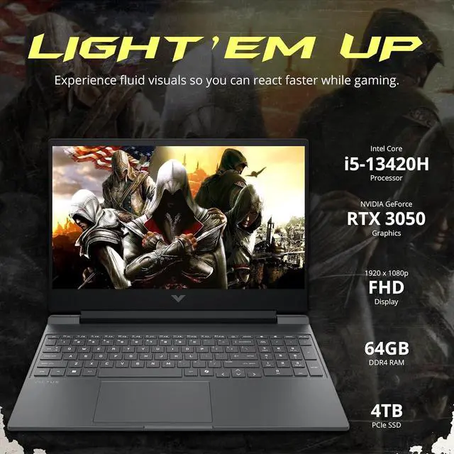 HP Victus 15.6" 144Hz FHD Gaming Laptop, Intel i5-13420H, 64GB RAM, 4TB PCIe SSD, NVIDIA GeForce RTX 3050, Backlit Keyboard with Num Pad, Camera, Wi-Fi 6, Windows 11, Silver, 1TB Docking Station Set