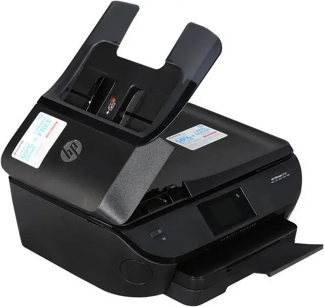 | Features | Print on your terms Print with just a touch from your NFC-printing-enabled smartphone and tablet. Print from your iPhone, iPad, Android-based mobile devices, Amazon Kindle Fire - and many more. Easily connect to your local network and the Internet - wirelessly or using the Ethernet port. Start printing and organizing quickly with easy setup from your smartphone, tablet, or PC. Save up to 50% on ink with HP Instant Ink Print high-quality documents and photos in black-and-white and color - all for the same low price. HP high-yield ink cartridges offer an additional low cost printing option for high-volume printing. Getting started with HP Instant Ink is quick and easy - learn more at hpinstantink.com. Print lab-quality color photos in seconds for pennies, when you sign up for HP Instant Ink. Full-featured productivity for work and home Print documents with vibrant, professional color and sharp, laser-quality text - perfect for any occasion. Save paper and conserve resources - consume up to 50% less paper with automatic two-sided printing. Walk up, edit, and print high-quality photos - right at the device. Save time with the 25-page automatic document feeder and separate 4 x 6-inch photo paper tray. |