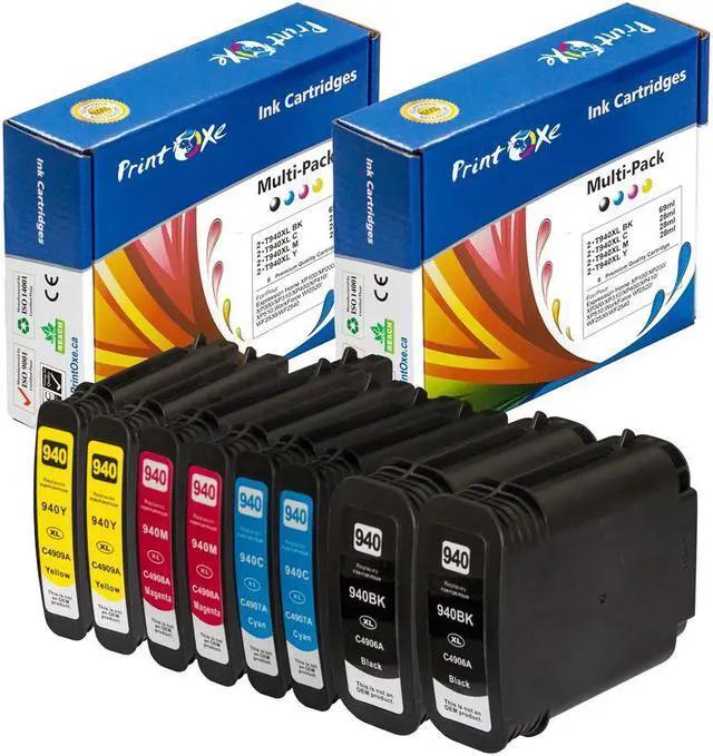 Superior quality of new 8- Packs of HP 940XL Compatible Ink Cartridges (2 Sets) With XL Sophisticated Chips; 2 Black, 2 Cyan, 2 Magenta, & 2 Yellow 940 Compatible For Use in the following