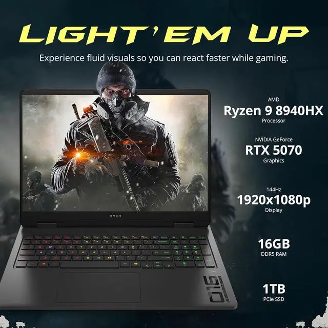 The HP Omen 16" FHD 144Hz Gaming Laptop delivers extreme performance with the AMD Ryzen 9 8940HX Processor, offering exceptional multitasking speed and smooth responsiveness for demanding gaming and creative workloads, while the NVIDIA GeForce RTX 5070 Graphics powers advanced ray tracing and high-FPS gameplay, ensuring crisp visuals and fluid action on its immersive 144Hz display.