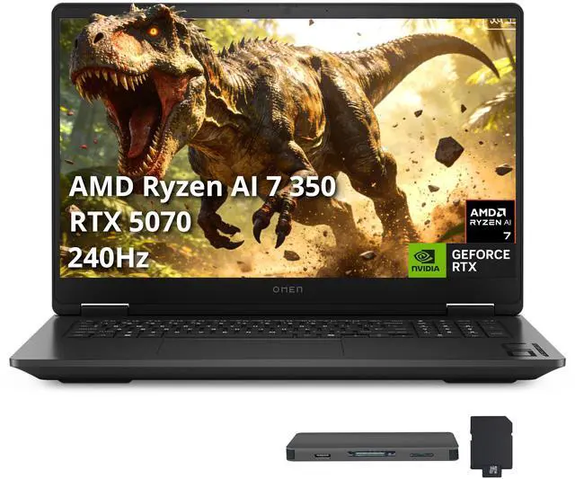 HP Omen 17.3" QHD 240Hz Gaming Laptop, AMD Ryzen AI 7 350, 16GB DDR5, 2TB Storage(1TB SSD+1TB Docking Station Set), GeForce RTX 5070, RGB Backlit Keyboard, Numeric Keypad, Win 11, Black