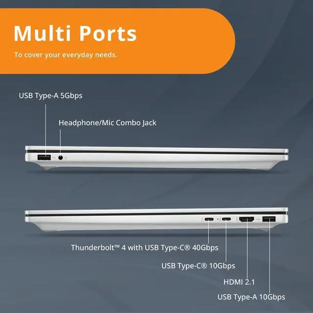Windows 11 Pro: 14.09" x 10.03" x 0.59", 4.23 lbs. Ports: 2x USB-C, 2x USB-A, 1x HDMI 2.1, 1x Headphone /microphone combo. Wi-Fi 7 + Bluetooth 5.4. Bonus Docking Station Set: 1x 7-in-1 Docking Station w/ 1TB Storage, 1x 32GB MicroSD Card w/ Adapter, 1x Type-C Data Cable, 1x 3-in-1 Charging Cable, 1x Suede Cleaning Cloth.
