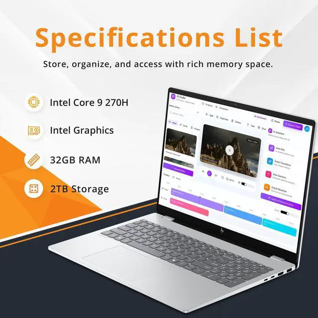 Intel Core 9 270H Processor: High-performance 14-core processor with up to 5.8 GHz turbo speeds for seamless multitasking.