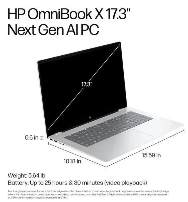 HP OmniBook X 17-dd0013dx Notebook (TOUCHSCREEN), Windows 11 Home 64-Bit, Intel Core Ultra 7 256V 8-Core Processor 2.20GH z, 16GB (1x16GB) LPDDR5x-8533 MT/s (onboard), Intel Arc Graphics (Integrated), 1TB PCIe Gen4 NVMe M.