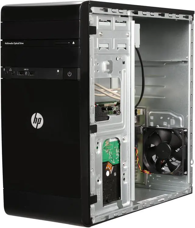 HP Pavilion P2-1310 Mini Tower Desktop PC with Dual Core AMD Fusion E2-1800 (Zacate) 1.7Ghz, 4GB DDR3 RAM, 500GB HDD, Radeon HD 7340, HD 6 Channel Audio, DVDRW with LightScribe, Windows 8 Pro 64 Bit