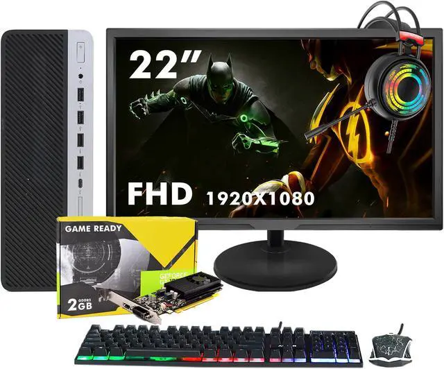 : HP ProDesk 600 G3 SFF Gaming Desktop PC, New 22-inch Full HD Monitor, New Gaming Keyboard & Mouse, New Gaming Headset, Power Cord and Wi-Fi Adapter.