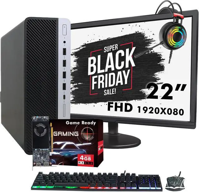 : HP ProDesk 600 G3 SFF Gaming Desktop PC, New 22-inch Full HD Monitor, New Gaming Keyboard & Mouse, New Gaming Headset, Power Cord and Wi-Fi Adapter.
