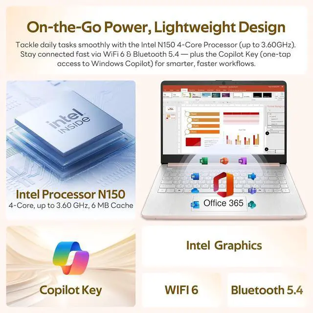 Intel Processor N150: Power through everyday work with dependable performance and energy-efficient design that keeps everything running smoothly.