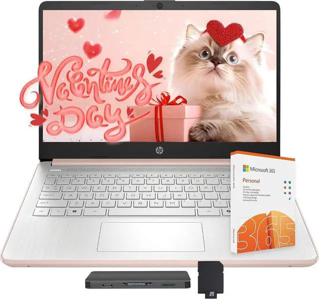 HP Stream 14" Laptop with AI Copilot, Flagship for Students & Business, 13th Gen Intel 4-Core, 4GB RAM, 256GB Storage(128GB UFS+128GB Docking Station), 1-Year Office 365, Win 11, Rose Gold