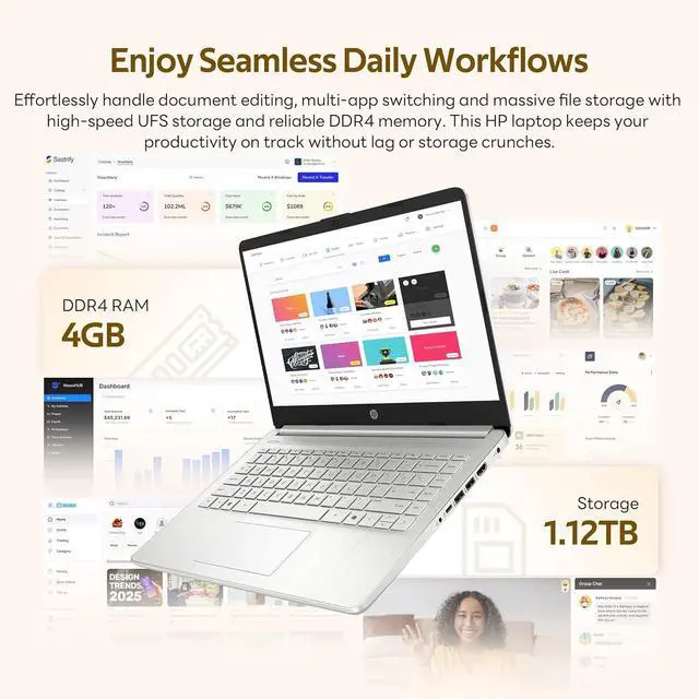 HP Stream 14" HD Laptop for Students & Business, 13th Gen Intel 4-Core, 4GB RAM, 1.12TB Storage(128GB UFS+1TB Docking Station Set), 1-Year Office 365, AI Copilot, Windows 11, Silver