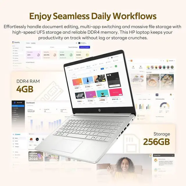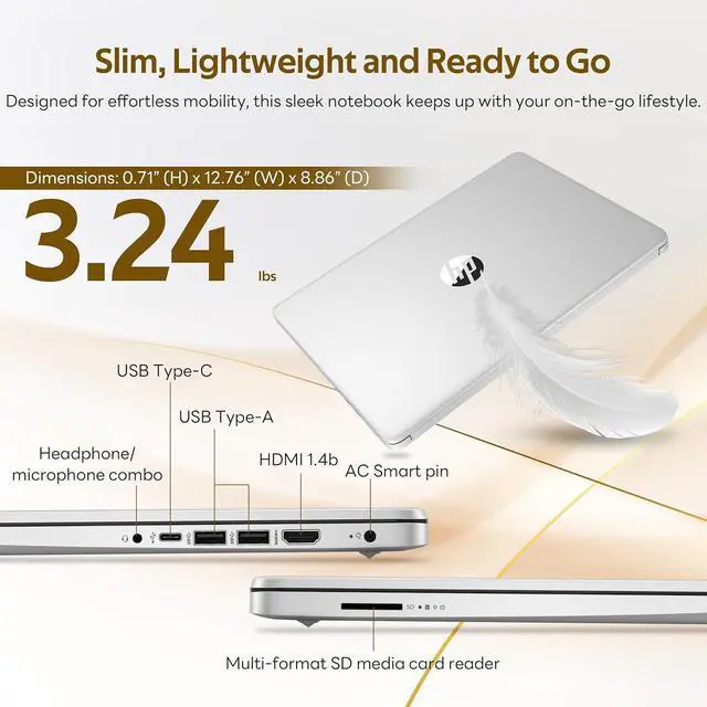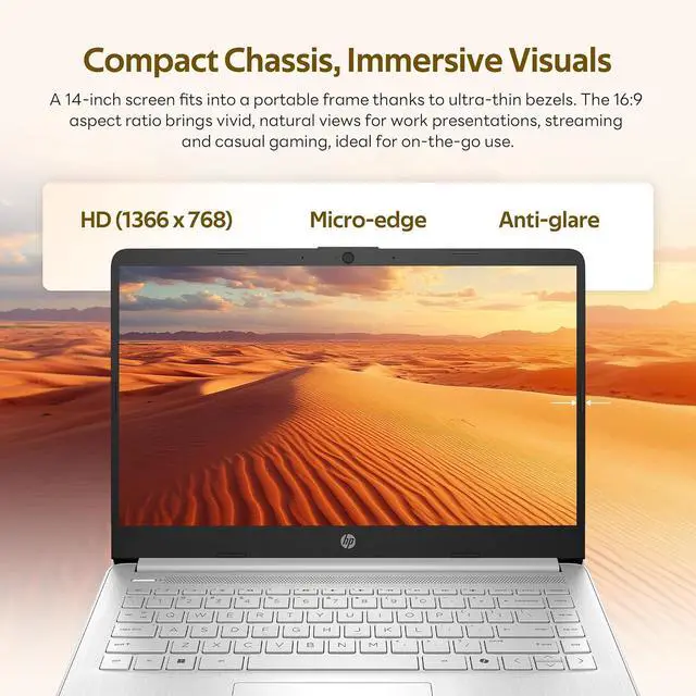 14" HD Display: A bright 14" HD screen provides crisp visuals and ample workspace, making multitasking, browsing, and media viewing more enjoyable on the go.