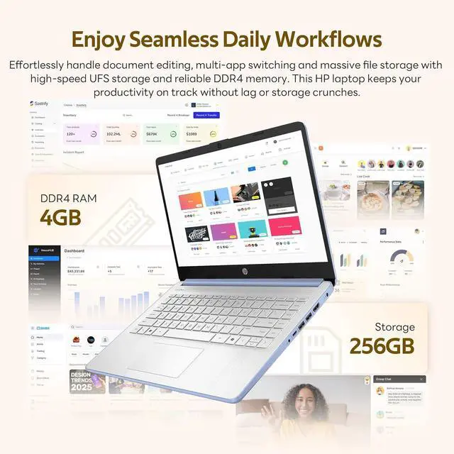 14" HD Display: A 14" HD screen provides crisp visuals and ample workspace, making multitasking, browsing, and media viewing more enjoyable on the go.