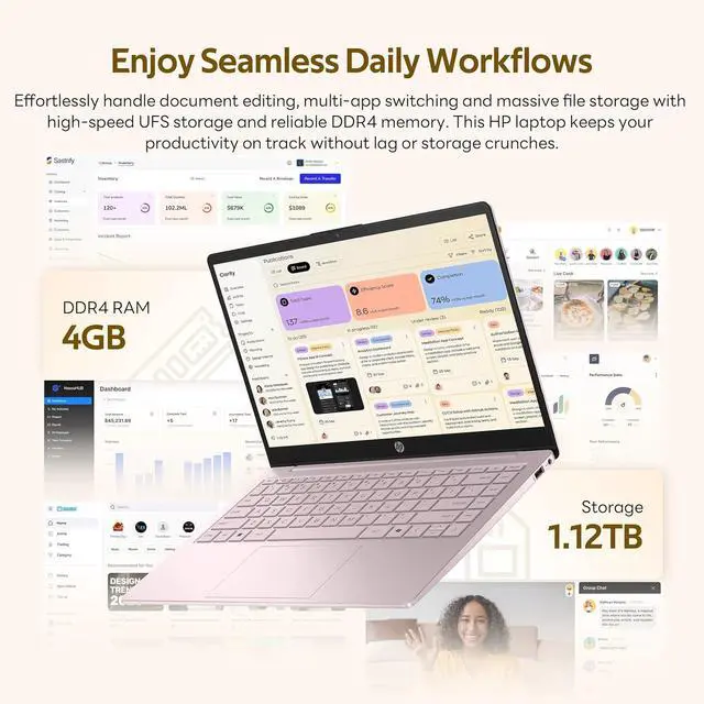 HP Stream 14" HD Laptop for Students & Business, 13th Gen Intel 4-Core, 4GB RAM, 1.12TB Storage(128GB UFS+1TB Docking Station Set), 1-Year Office 365, AI Copilot, Windows 11, Tranquil Pink