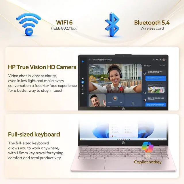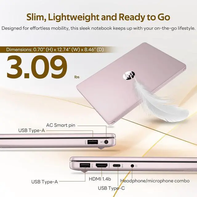 The HP Stream 14" HD Laptop for Students & Busines offers smooth everyday performance with a 13th Gen Intel 4-core processor and Intel UHD graphics, enhanced by AI Copilot and 1-year Office 365 for productivity and learning.