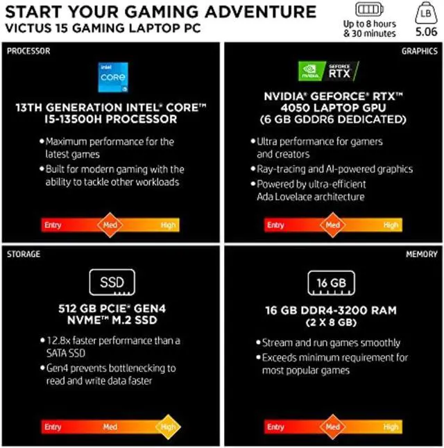 HP Victus 15-fa1000 Laptop 15.6" Non-Touch Screen