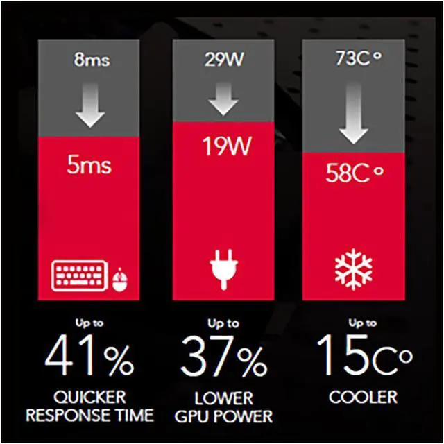 The low-power RX 550 combined with the Chill On energy-saving cooling program not only makes your keyboard and mouse response time faster by 41%, but also saves 37% of GPU power consumption, and reduces heat dissipation by 15 degrees.