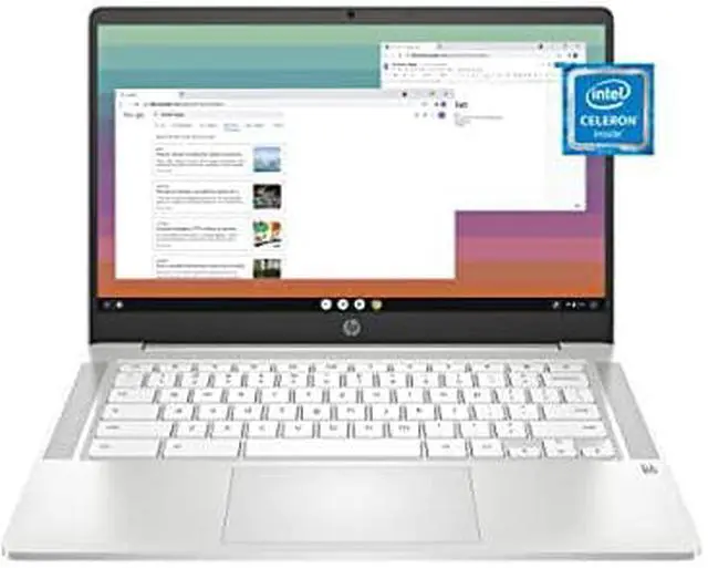 Become the epitome of efficiency and entertainment with the HP Chromebook 14a-na0240nr, a sleek and modern touchscreen notebook that embodies the perfect blend of work and play. This high-tech device is powered by a responsive Intel Celeron N4120 processor, ensuring smooth performance for all your daily tasks. With a generous 14-inch HD display, you'll enjoy more screen space that brings your content to life, whether you're working on a project or indulging in your favorite streaming services.
