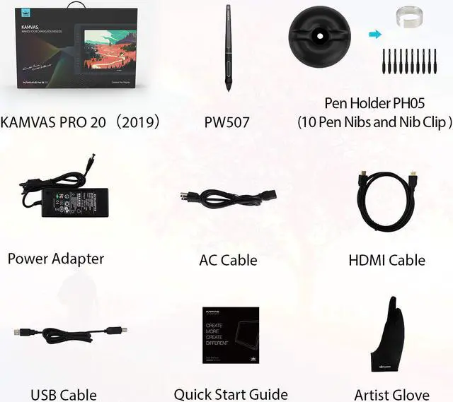 - Kamvas Pro 20 comes with a PW507 digital pen. It features battery-free and 8192 levels of pen pressure.