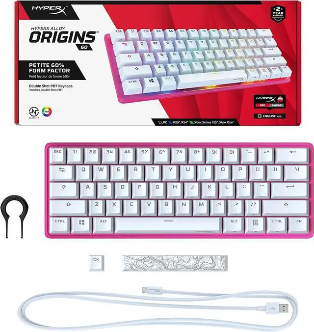 Includes Esc & Space keycaps along with keycap puller. Comes with detachable USB Type-C cable.