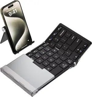 iClever Foldable Bluetooth Keyboard with Touchpad, BK08 Folding Wireless Portable Keyboard for Travel, Mini Compact Keyboard for iPad iPhone Tablet Laptop PC Android Windows iOS, Sync Up to 3 Devices