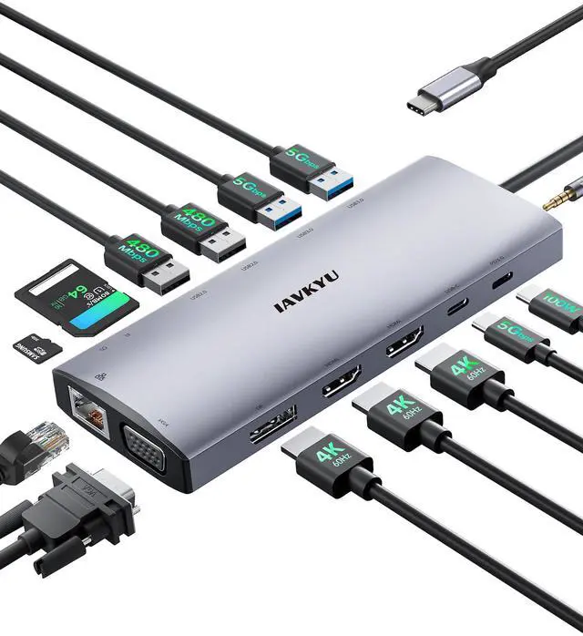 This 15-in-1 multi-functional laptop dock offers extensive connectivity options and triple screen expansion, making it an ideal solution for enhanced productivity and convenience. With features such as multiple video interfaces, high-speed data transfer, Gigabit Ethernet, versatile USB ports, PD charging, and SD/TF card reader, this dock provides seamless connectivity and efficient multitasking capabilities
