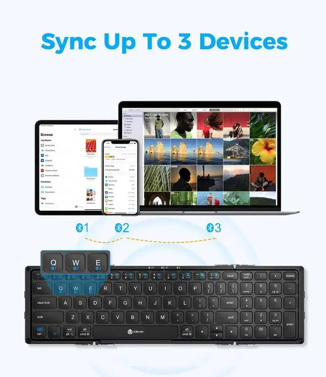 | Keyboard Description | 82-key foldable Bluetooth keyboard with nummber pad (non-backlit); laptop-style keys under 50 dB; Multi-Device Connection |