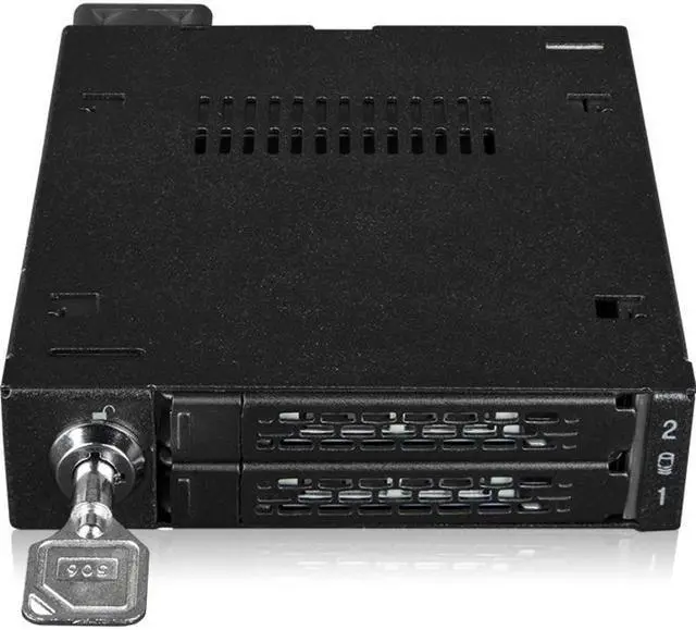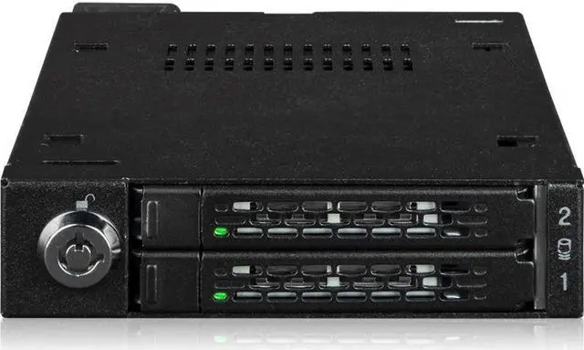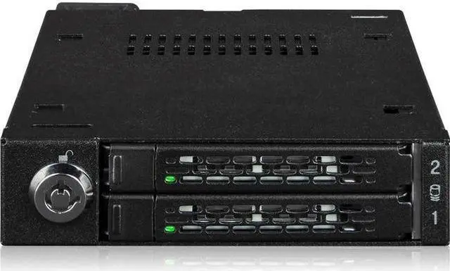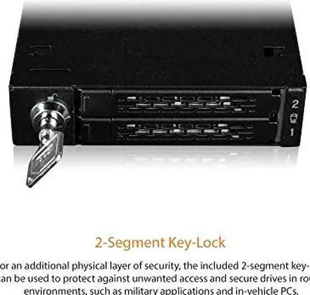 A: The ICY DOCK ToughArmor MB092VK-B features a 2-segment key lock for additional physical security ensuring that your SSDs are safely housed within the enclosure.