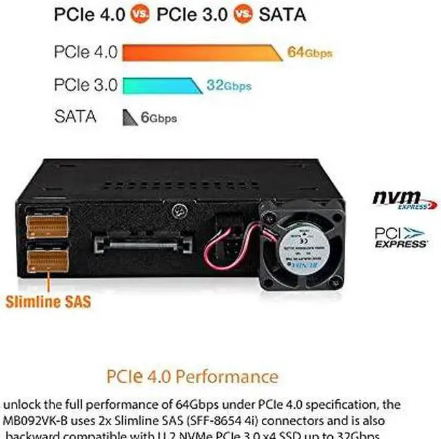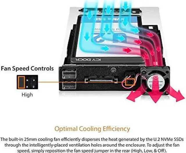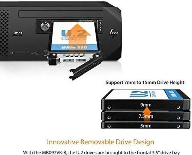 - Fits Various SSD Sizes: This mobile rack is engineered to fit 2x 2.5 U.2/U.3 NVMe SSDs of different heights ensuring compatibility with a range of storage options.