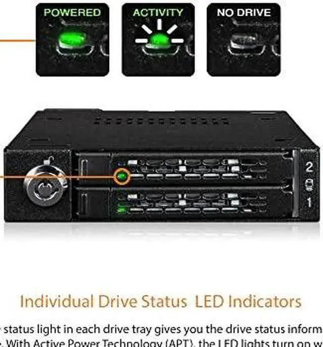 - Safety Features: The eagle-hook tray latch ensures that the tray remains securely inside the enclosure while the 2-segment key lock provides additional physical security for your SSDs.