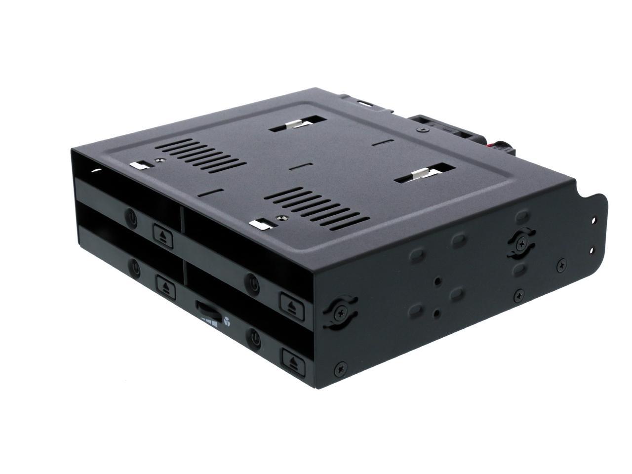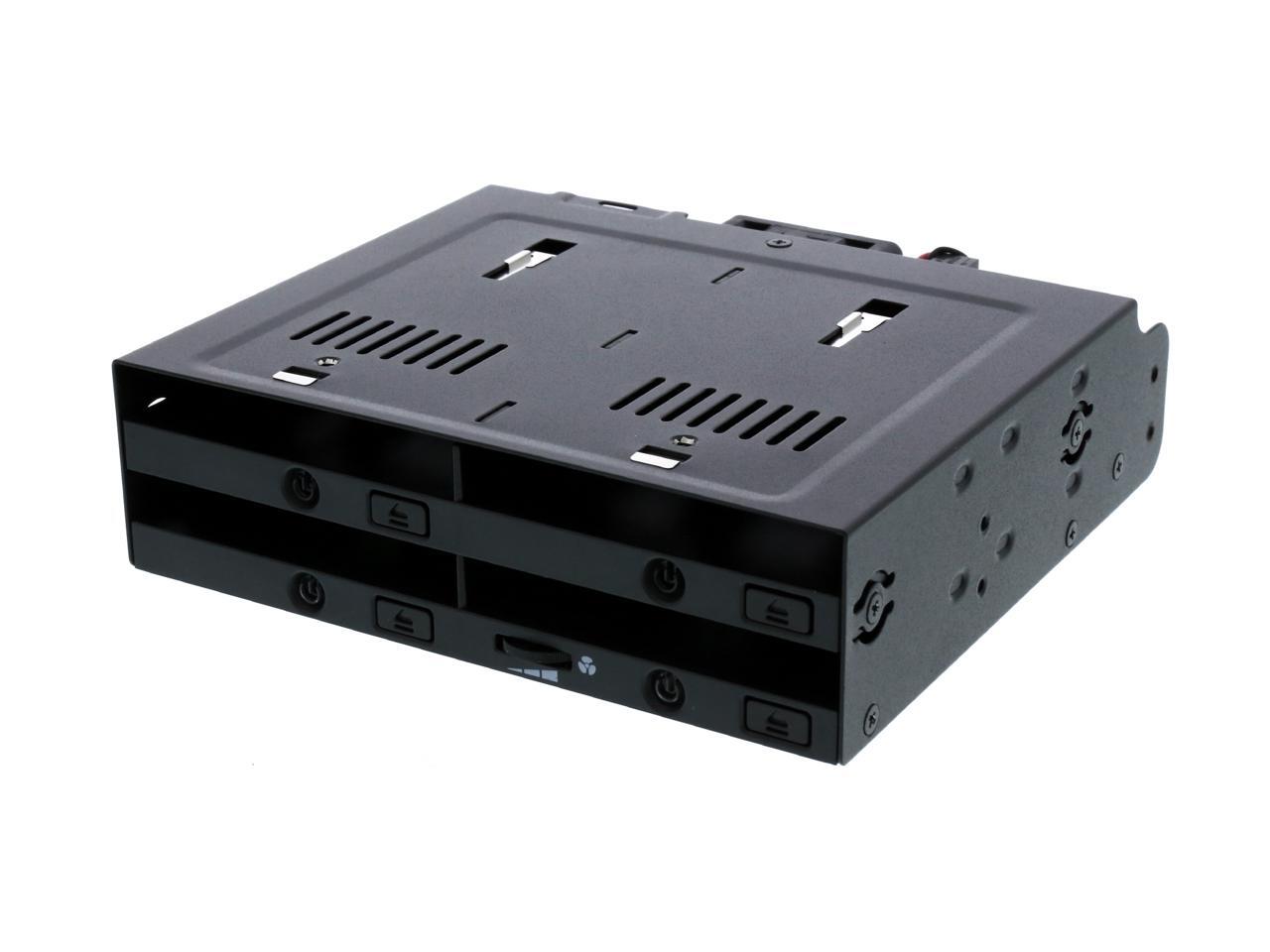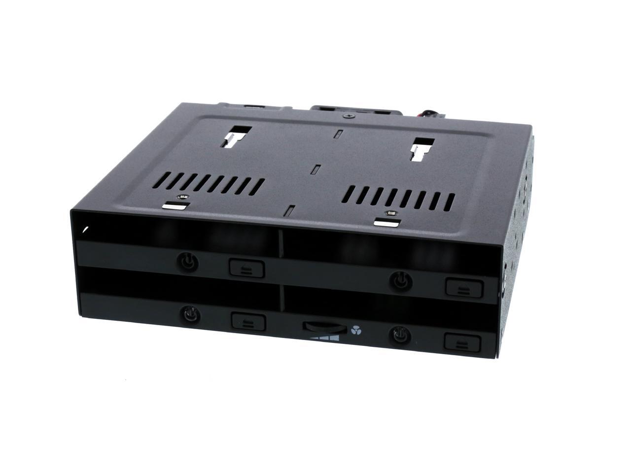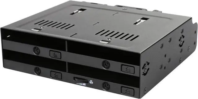 Supports docking up to 4 x 2.5" SAS/SATA HDD/SSD with SATA hot-swap functionality (5mm - 9.5mm) Fits any external 5.25" bay Full metal chassis with industrial ABS plastic for full protection Completely tray-less design accepts bare drives without screws or holders Drive door-less design for quick hot-swapping Safety enhanced drive ejection button to prevent accidental drive ejection Large individual drive eject buttons Individual tamper-proof drive power button with cool blue drive activity LED High performance 40mm cooling fan with an easily accessible fan speed control Powered all four drives from a single 15 pin power connector Supports SAS and SATA cables with locking latch design Flush drive insertion design fully protects drives from possible environmental damage Artistically designed ventilation slots for maximum passive cooling