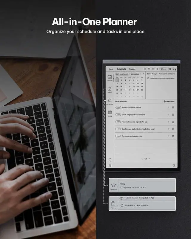 - AI Notetaker & Schedule ManagementMark up handwriting supernote effortlessly with special star, triangle, and circle symbols using the stylus pen to automatically create to-dos and attention items. Manage your personal schedule and display weekly work reports with ease. A perfect gift for friends, colleagues and client.