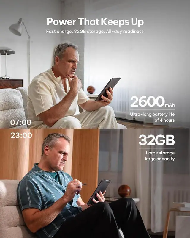 - Stream All Week Long Powered by a 2600mAh battery, the iFLYTEK AINOTE Air 2 e ink tablet delivers continuous performance for 24/7 reliability, 32GB large storage with unlimited cloud backup for worry-free note-taking.