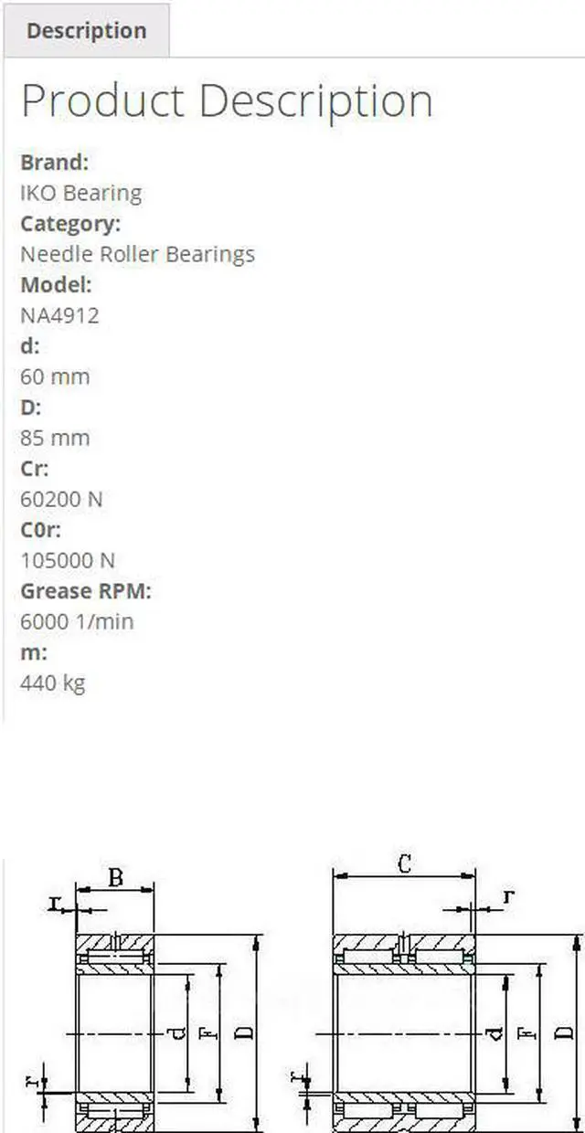 IKO NA4912 Needle Roller Bearings 60x85x25mm