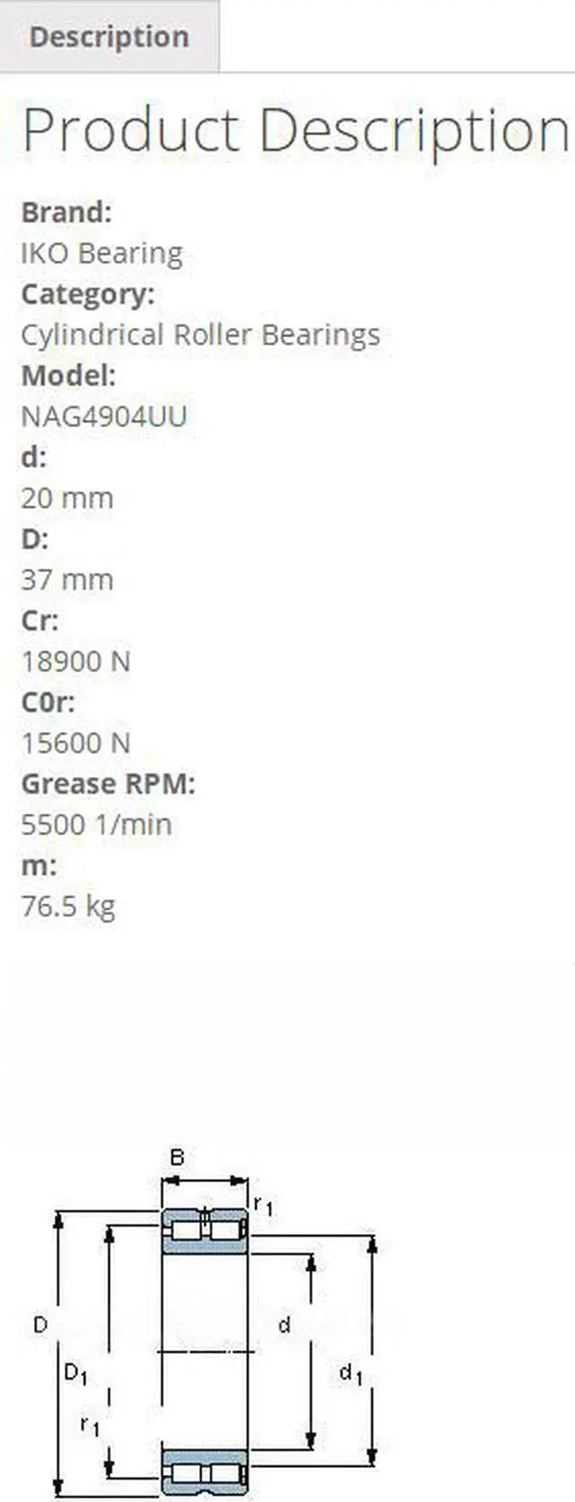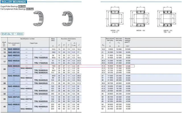 IKO NAG4904UU Cylindrical Roller Bearings,With Seal 37x20x17mm