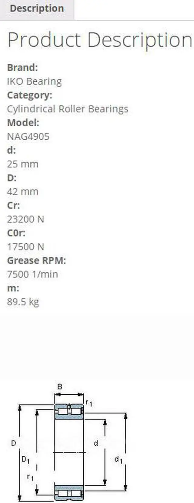 • IKO NAG4905 Cylindrical Roller Bearings 42x25x17mm