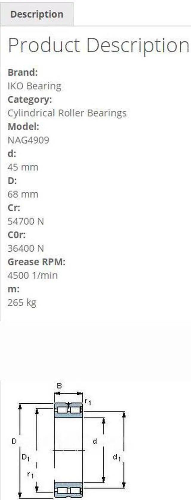 IKO NAG4909 Cylindrical Roller Bearings 68x45x22mm